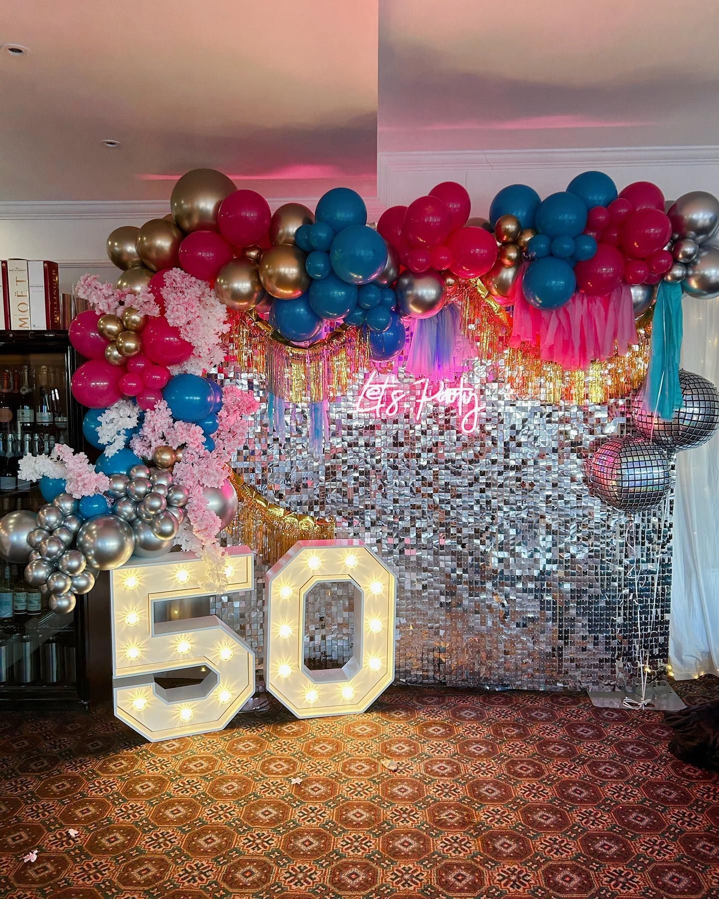 Experience a multitude of options to elevate your balloon garlands, including florals, disco balls, foil frills, and butterflies.