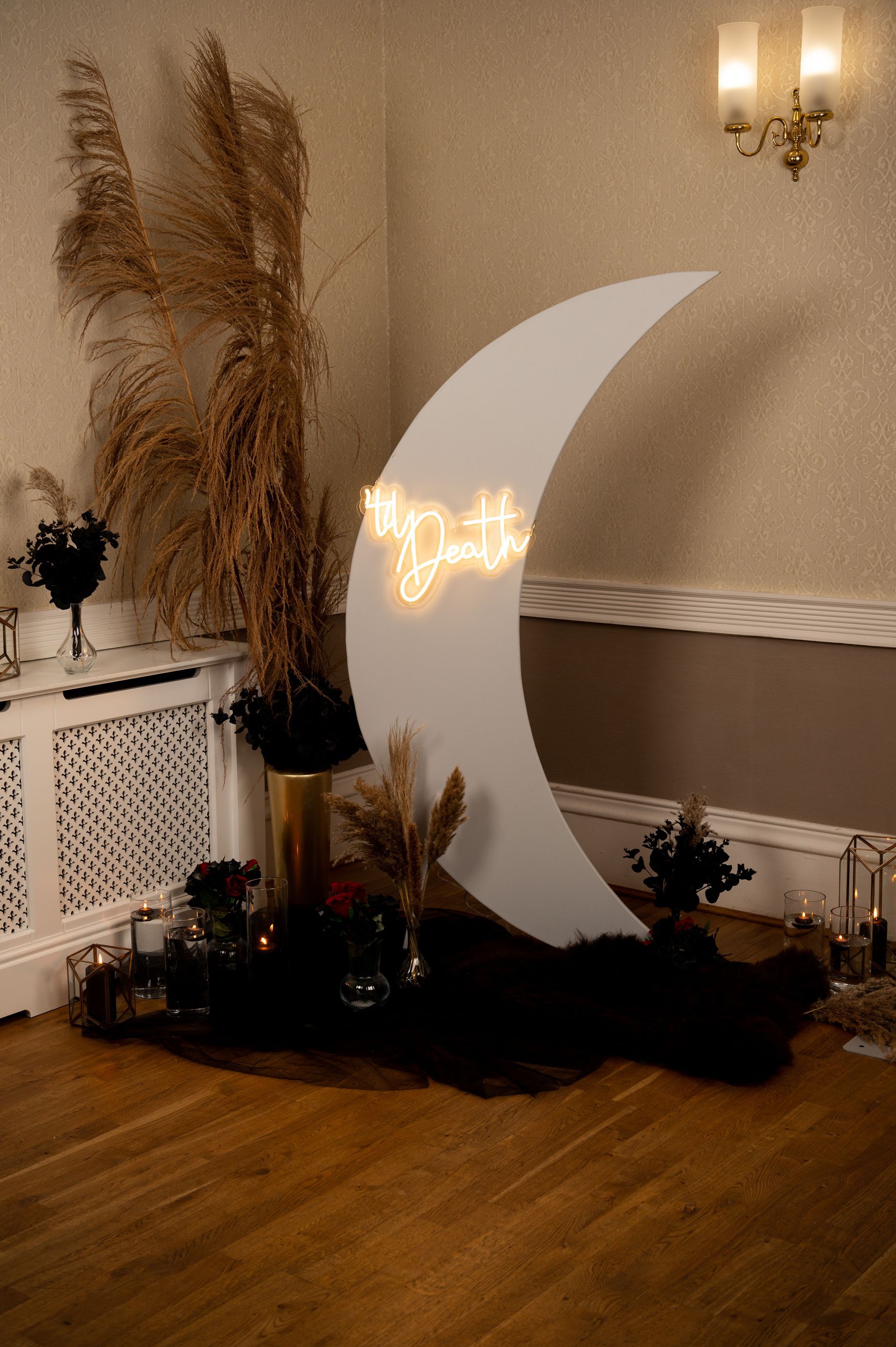 Our wooden shape backdrops are customisable to fit your theme, our backdrops are a hassle-free way to elevate your event decor. Whether you're planning a baby shower with a celestial theme or a wedding with a romantic, fairy-tale vibe, this backdrop seamlessly blends into any setting. Let your imagination soar and create unforgettable memories with our Moon and Cloud or Butterfly Wings the ultimate decorative piece that brings a touch of magic to every occasion.